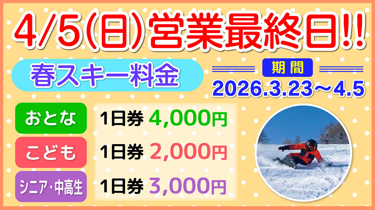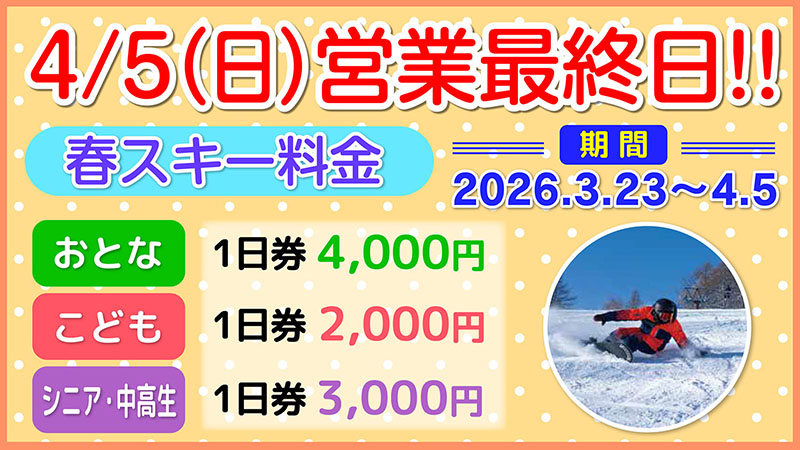 | 第5ゲレンデスノーパーク | – | 3/22は✕ | |